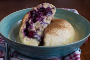 Kynutý borůvkový knedlík s vanilkovou omáčkou