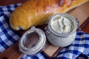 Máslo musí mít pokojovou teplotu, aby se do něj dobře zapracovaly bylinky. Nechte ho ideálně přes noc venku z lednice. Bylinky je potřeba nasekat opravdu na drobno, co možná nejvíce to půjde. Česnek prolisujeme do měkkého másla, přidáme bylinky a lehce osolíme. Poté vidličkou zapracujeme vše do másla, dokud se nám to krásně nespojí.