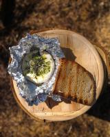 Hermelín zabalte do alobalu tak aby se horní část s máslíčkem nedotýkala, uděláte z toho takový měšec. Pak jen dáte na gril nebo nejlepé přímo do rožhaveném uhlí to je úplně nejlepší na takových asi 20 minut. Jako příloha je nejlepší opečený chleba .