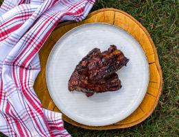 Až bude maso odleželé rozpálíme si gril. Připravíme si pečící papír a alobal. Maso zabalíme cca po dvou kusech do balíčků (samozřejmě záleží na velikosti masa) k masu jsem přidala dva očištěné stroužky česneku, které jsem jen lehce čepení nože rozdrtila, aby se uvolnilo aroma. Maso nejprve zabalíme do pečícího papíru a poté do alobalu. Dáme na gril na mírný plamen a zabalené necháme dusit cca hodinu podle velikosti masa, aby bylo krásně měkké. Nezapomeňte balíček čas od času otočit, aby se vám maso nepálilo.
