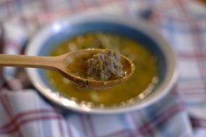 Až se nám vývar začne vařit přidáváme postupně knedlíčky, stačí je nechat projít varem a jsou hotové. Na závěr můžeme ozdobit čerstvou pažitkou nebo sušenými bylinkami do polévky.