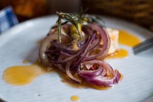 Cibule → pár kuliček pepře → sýry, tak aby zakryli cibuli → lehce přelít ochuceným olejem → pár feferonek → cibule → pepř → sýry → ochucený olej → feferonky …. A pořád dokola :) nezapomeňte na stranu sklenice umístit tak 2 bobkové listy a 2 snítky rozmarýnu, tak aby to bylo hezky rozložené.