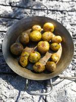 Nejprve si doma uvaříme v osolené vodě brambory ve slupce do měkka. Dále si dáme na gril ocelovou pánev nebo grilovací tácek. Brambory dáme na pánev, přidáme lžíci pesta nebo bylinkového másla a promícháme tak aby se bramoby obalily v másle nebo pestu. Zakápneme olivovým olejem a opekáme do hněda. Trvá to asi tak cca 20 minut, hlavně dávejte pozor aby se vám brambory nespálily.